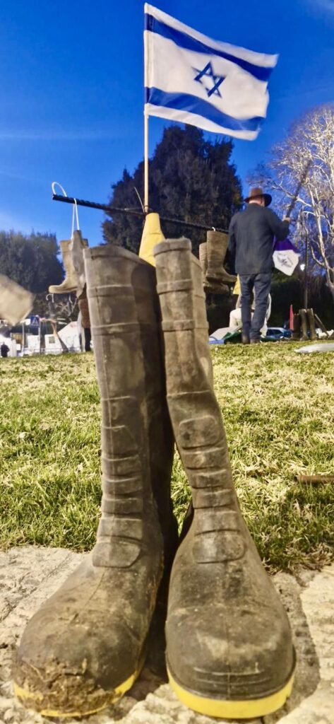 המגפיים הם סמל לעבודה הקשה ולרפתות שבקרוב ייסגרו בעקבות הרפורמה שמוביל שר האוצר בצלאל סמוטריץ’.