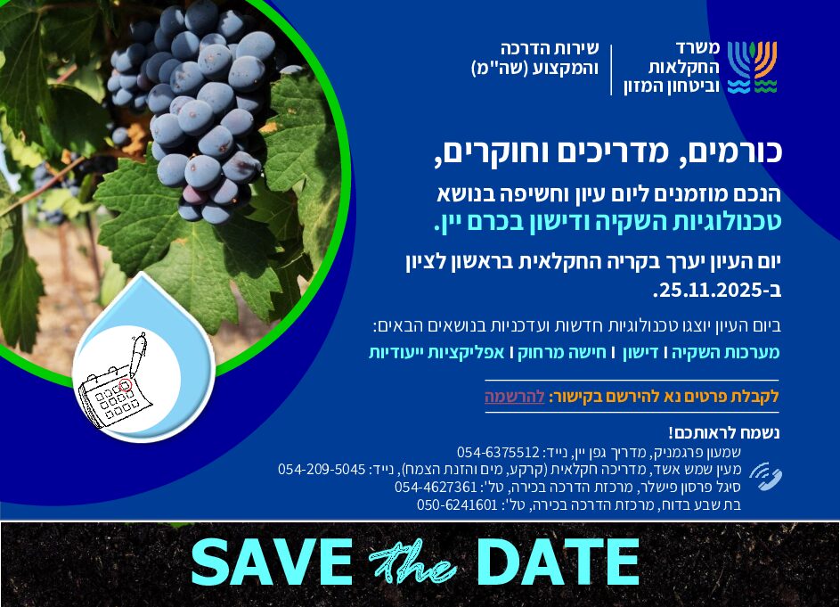 יום עיון – טכנולוגיות השקיה ודישון בכרם יין